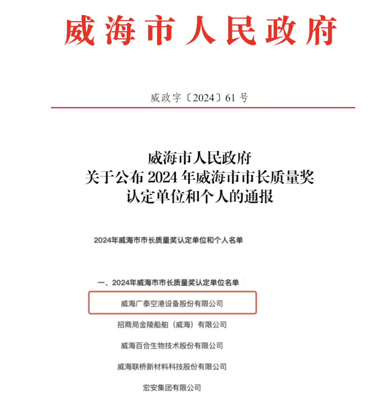 近期,由威海市質(zhì)量強(qiáng)市及品牌戰(zhàn)略推進(jìn)工作領(lǐng)導(dǎo)小組辦公室印發(fā)通知,組織開(kāi)展了2024年度威海市市長(zhǎng)質(zhì)量獎(jiǎng)?wù)J定工作。經(jīng)過(guò)激烈的角逐,威海廣泰空港設(shè)備股份有限公司(以下簡(jiǎn)稱“威海廣泰”)在眾多競(jìng)爭(zhēng)者中脫穎而出,成功榮獲2024年度威海市市長(zhǎng)質(zhì)量獎(jiǎng)。此項(xiàng)殊榮不僅是對(duì)威海廣泰產(chǎn)品…