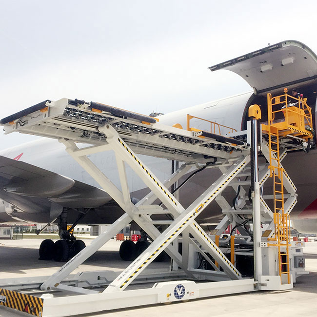 集裝貨物裝載機(內(nèi)燃機)是一種全液壓轉向、前橋驅動,行駛無級變速的自驅動車輛,該型集裝貨物裝載機最大裝卸重量為7噸,可滿足國內(nèi)機場現(xiàn)有的所有機型底艙集裝箱、集裝板的裝卸作業(yè),一次可同時裝載集裝板(3175×2438mm)一個,集裝箱(LD-3)兩個。