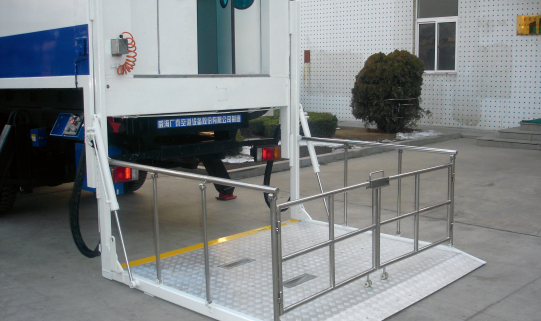 該類設(shè)備是一種液壓傳動(dòng),剪式升降、前后平臺(tái)可升降的機(jī)場(chǎng)特種地面保障設(shè)備,主要用于幫助行動(dòng)不便的旅客上下飛機(jī)。該設(shè)備由汽車底盤、廂體、升降機(jī)構(gòu)、前后平臺(tái)、液壓系統(tǒng)和電氣系統(tǒng)組成。