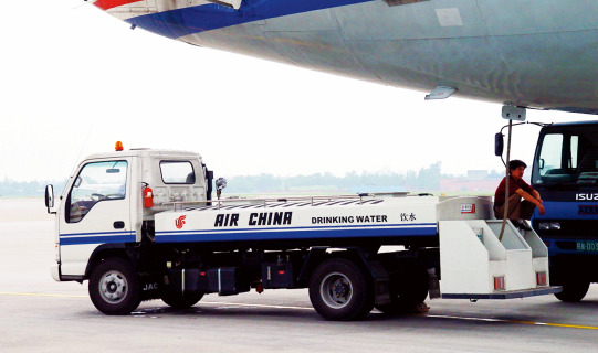 該類設(shè)備是通過車載裝置,為飛機提供清潔生活用水的自行式機場地面保障設(shè)備。該設(shè)備由汽車底盤、水箱總成、尾部框架總成、供水系統(tǒng)、液壓系統(tǒng)和電氣控制系統(tǒng)組成。