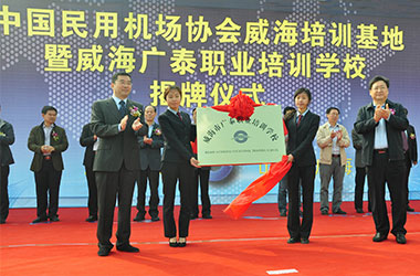 2015年10月,威海廣泰與中國民用機(jī)場(chǎng)協(xié)會(huì)聯(lián)合在威海廣泰職業(yè)培訓(xùn)學(xué)校成立“中國民用機(jī)場(chǎng)協(xié)會(huì)威海培訓(xùn)基地”,整合優(yōu)勢(shì)資源,互利共贏,共同打造空港地面設(shè)備從業(yè)人員職業(yè)化培訓(xùn)平臺(tái),進(jìn)一步拓寬了師資渠道和培訓(xùn)力量,提高培訓(xùn)質(zhì)量和實(shí)效性,對(duì)推進(jìn)我國機(jī)場(chǎng)從業(yè)人員資質(zhì)能力培訓(xùn)的系統(tǒng)化、標(biāo)準(zhǔn)化,具有重要意義。